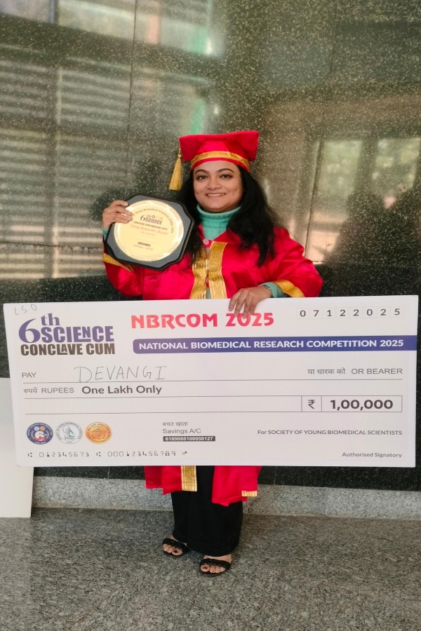 Congratulations to Ms. Devangi Ghosh PhD student of Dr. Subhasree Roy Choudhury for winning First position best young researcher award (Oral) with prize money Rs. 1L in NBRCOM 2025 @ AIIMS JODHPUR.