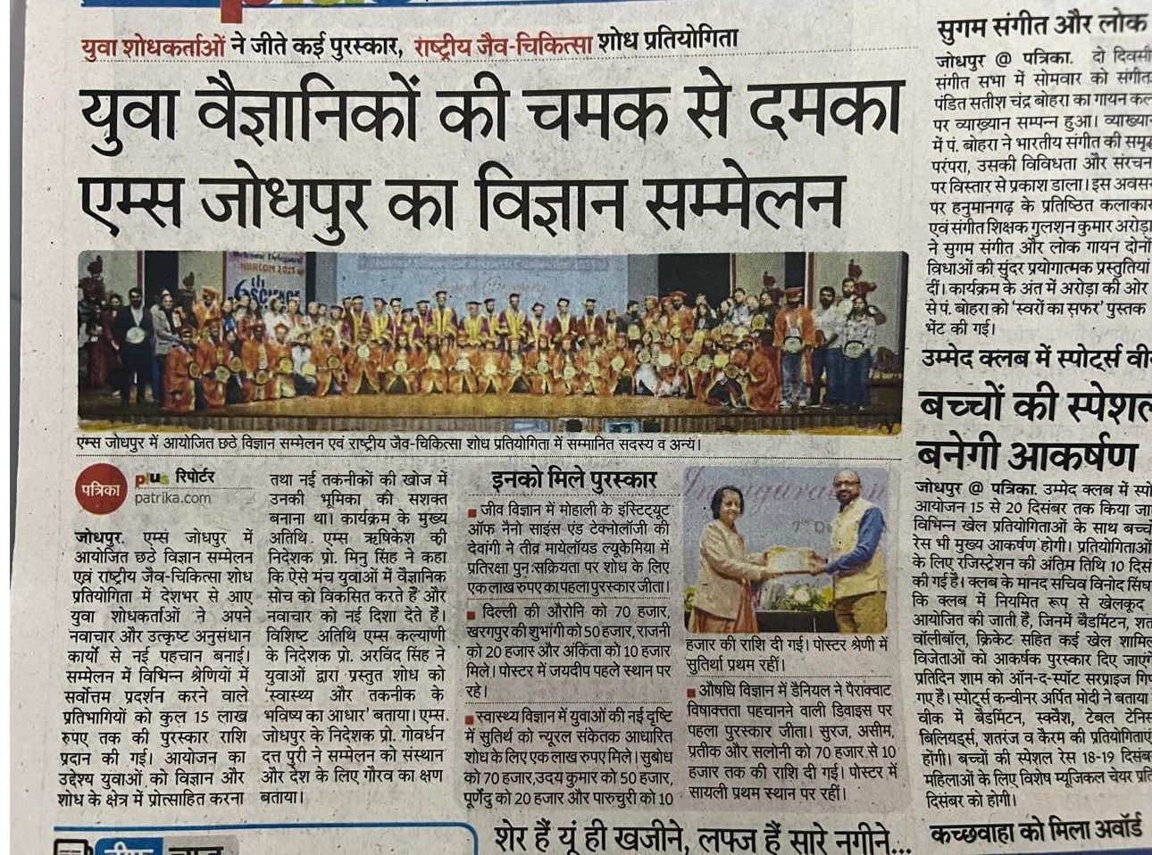 Congratulations to Dr. Subhasree Roy Choudhury & her student Ms. Devangi Ghosh for media coverage of their research on targeted epigenetic nanotherapy for Acute Myeloid Leukemia in NBRCOM 2025@ AIIMS.