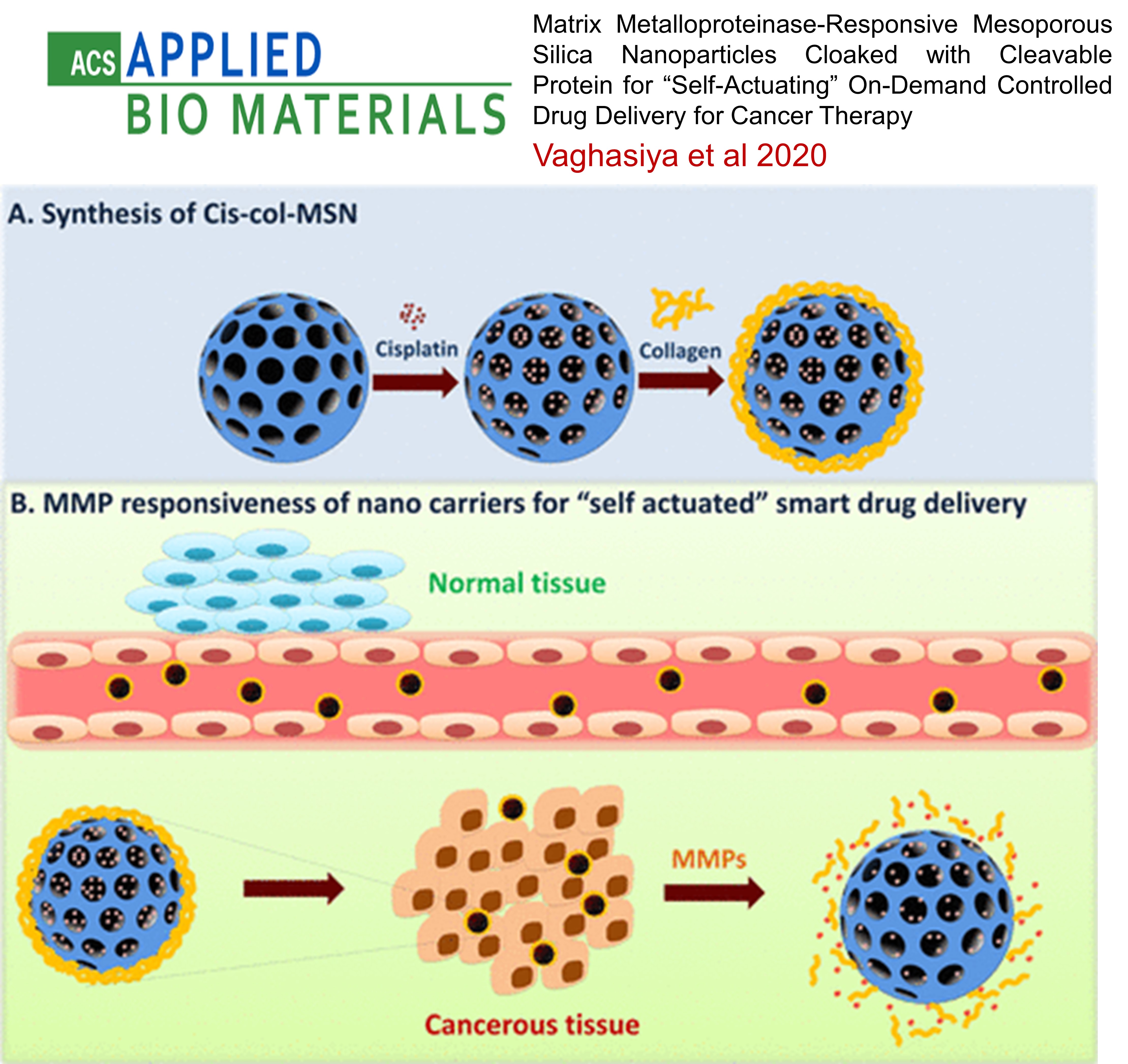 Matrix metalloproteinase responsive mesoporous silica nanoparticles cloaked with cleavable-protein for “Self-actuating” on-demand controlled drug delivery for cancer therapy: , Vaghasiya K, Ray E, Sharma A, Katare OP, Verma RK* , (2020) , 3: 4987–4999 , ACS Applied Bio Materials , https://doi.org/10.1021/acsabm.0c00497 -
